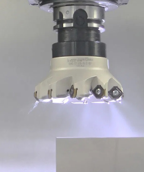 従来の「洪水加工(大量のクーラント)」と違い、ごく少量の切削油をミスト(霧状)にして工具先端へ吹き付ける方式です。